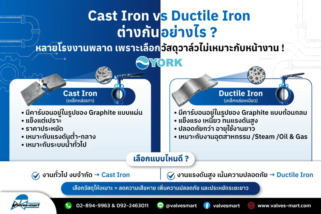 Cast Iron vs Ductile Iron ต่างกันอย่างไร 01/02/2026 Cast Iron และ Ductile Iron เป็นวัสดุเหล็กหล่อที่นิยมใช้อย่างมากในงานอุตสาหกรรม (...) Read More