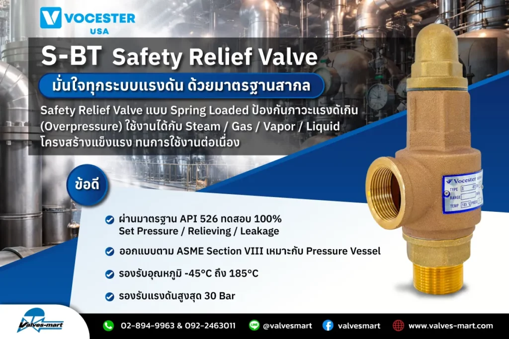 VOCESTER S-BT วาล์วนิรภัยที่ให้ทั้งความปลอดภัย มาตรฐานสากล และความมั่นใจในทุกระบบแรงดัน 01/02/2026 เซฟตี้รีลีฟวาล์ว (Safety Relief Valve) VOCESTER S-BT หรือวาล์วนิรภัยสำหรับระบายแรงดัน (...) Read More