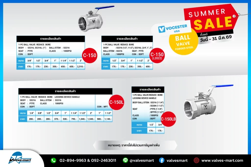 SUMMER SALE 2026 Ball Valve VOCESTER รุ่น C-150 07/03/2026 ✨ VOCESTER สินค้าคุณภาพจากสหรัฐอเมริกา USA วาล์วควบคุมการไหลที่ทำงาน (...) Read More