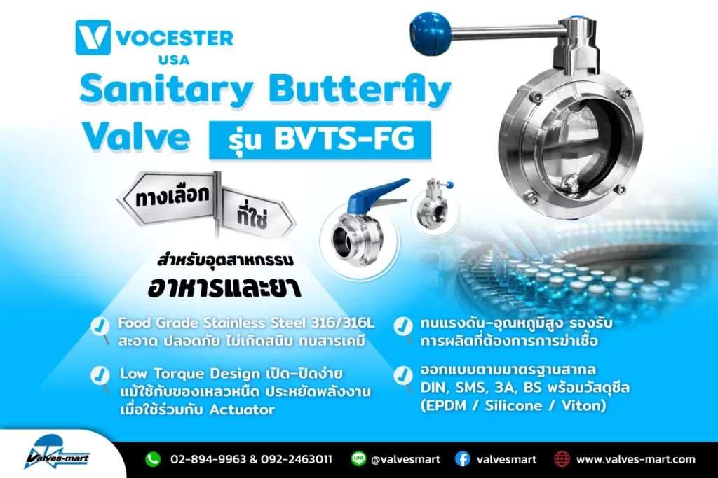 Sanitary Butterfly Valve – รุ่น BVTS-FG จาก VOCESTER (USA) 02/11/2025 ทางเลือกที่ใช่ สำหรับอุตสาหกรรมอาหารและยา (...) Read More