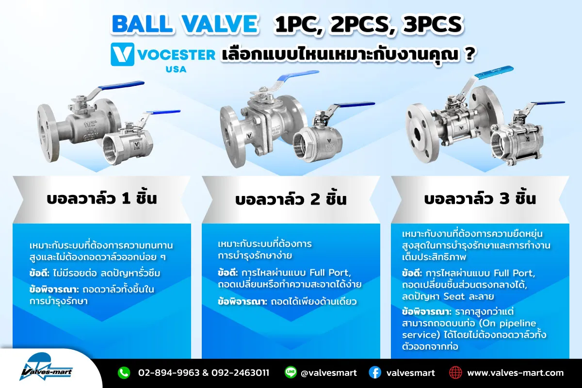 บอลวาล์ว (Ball Valve) 1PCS, 2PCS และ 3PCS แบรนด์ Vocester เลือกแบบไหนเหมาะกับงานคุณ 02/12/2025 Read More »